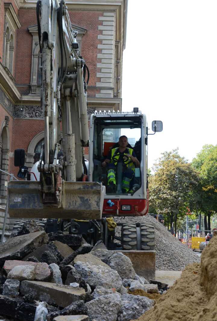 Beschreibung:Auf dem Bild ist ein Kran- und Baumaschinenführer zu sehen, der einen Bagger auf einer Baustelle bedient.
