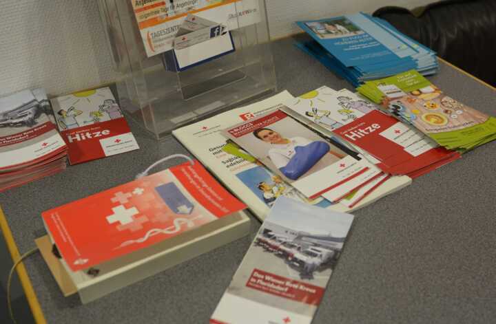 Beschreibung:Das Bild zeigt Informationsbroschüren des Gesundheitsdienstes Das Rote Kreuz.