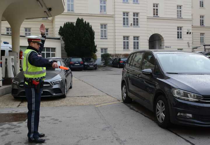 Beschreibung:Ein Exekutivbediensteter im Polizeidienst, der den Verkehr mit einer Kelle regelt.