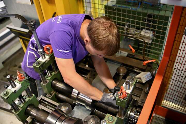 Beschreibung:Eine Person arbeitet an einer industriellen Maschine oder Anlage.