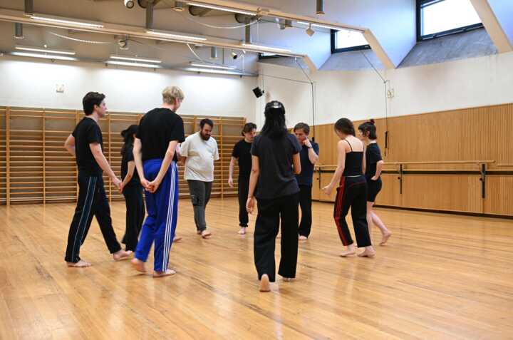 Beschreibung:Auf dem Bild ist eine Gruppe von Menschen in einem Turnsaal zu sehen.