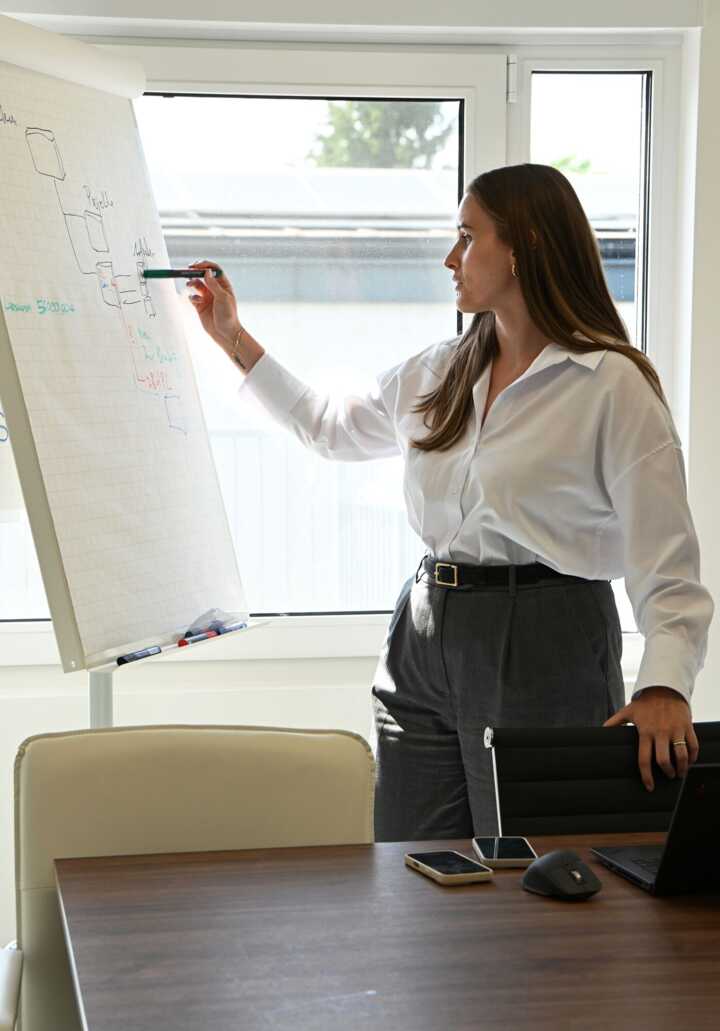 Beschreibung:Auf dem Bild ist eine Person zu sehen, die an einem Flipchart arbeitet.